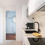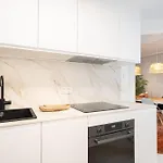 Ein Herd und ein Geschirrspüler werden in einer voll ausgestatteten Küchenzeile des Apartments Helloasturias Oviedo, Un Espacio Luminoso Y Moderno En El Corazon De La Ciudad angeboten. Die Unterkünfte ist ziemlich nah an der nächstgelegenen Bushaltestelle Santa Susana - Instituto.